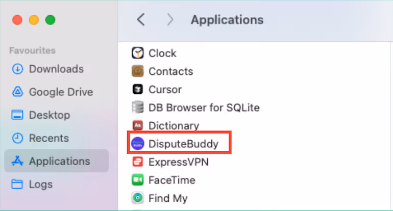 Drag the Dispute Buddy app into your Applications folder