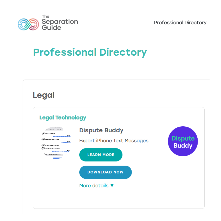 Dispute Buddy is proud to partner with The Separation Guide to help individuals navigate separation with greater clarity and confidence. This collaboration highlights Dispute Buddy as a trusted tool for downloading, organising, and preserving text and WhatsApp conversations when they matter most. Whether separation is amicable or high-conflict, having a clear record of communication can reduce misunderstandings and help you feel more prepared for legal or mediation support.